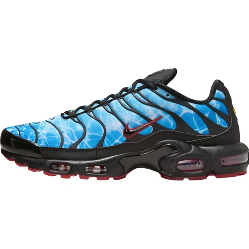 Design: Inspired by the fierce energy of the ocean predator, this pair features a deep black upper with sharp Racer Blue accents and metallic silver details. The aggressive wavy lines and gradient tones evoke the stealth and power of a shark cutting through water